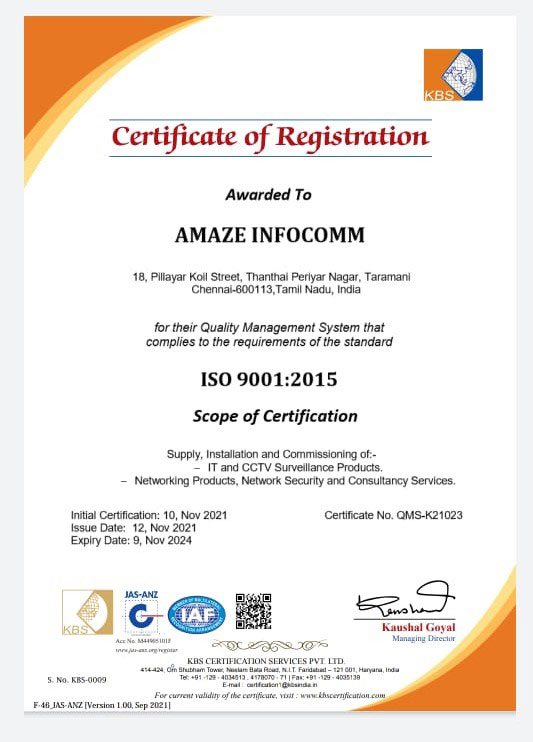 Amaze Infocomm is a end to end IT solution provider with some of the services includes but limited to Structured Cabling, CCTV installation, Video Conference room Installation, Security and Surveillance solutions for Data Centers, Industrial Networking Installation, Safety and Alarm System Installation, IoT Installation etc..